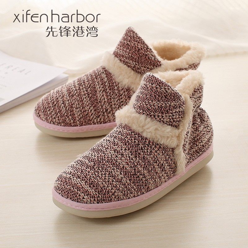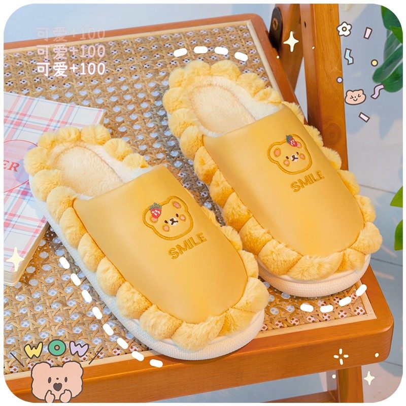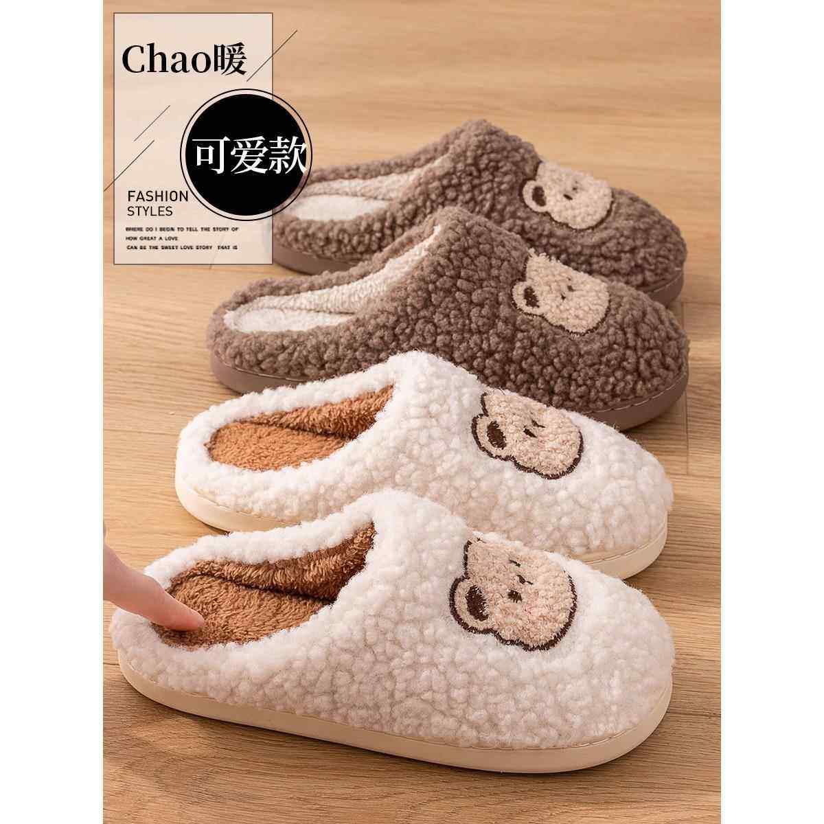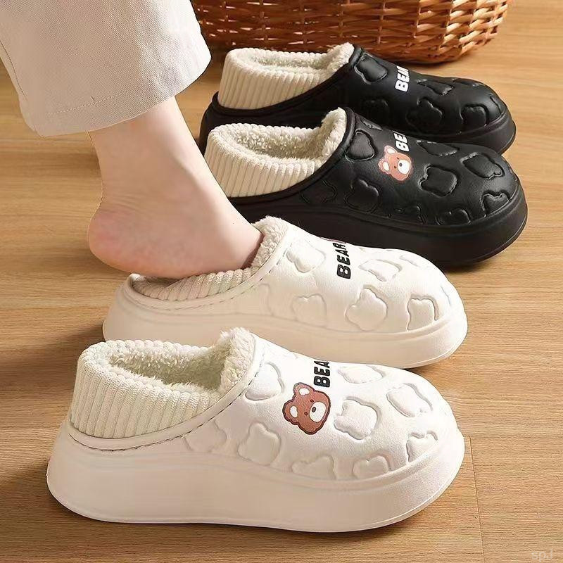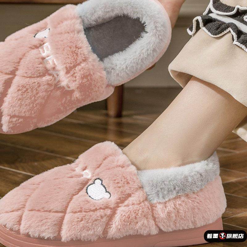 速发防水棉拖鞋生用可爱皮面厚底毛拖冬舍宿季情侣一对毛绒拖鞋