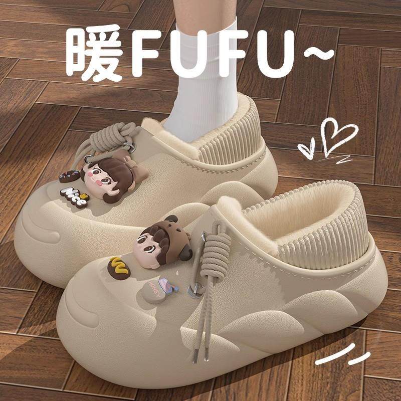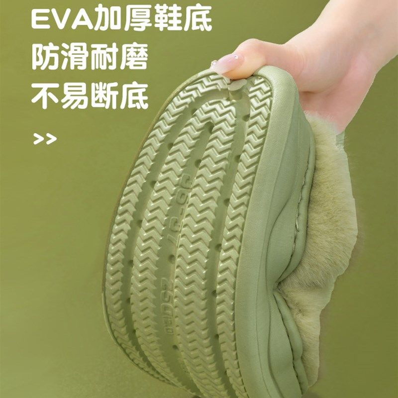 EVA不沾灰毛绒拖鞋冬厚底情侣包头居家鞋防滑保暖舒适懒人鞋静音