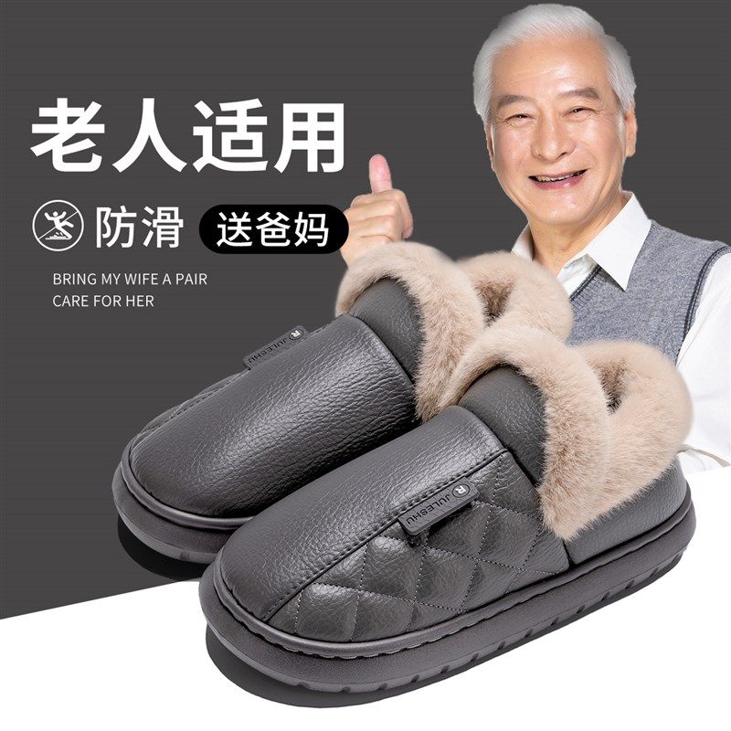 老年人棉拖鞋男士冬季包跟防滑棉鞋家用家居防水外穿加绒保暖鞋女