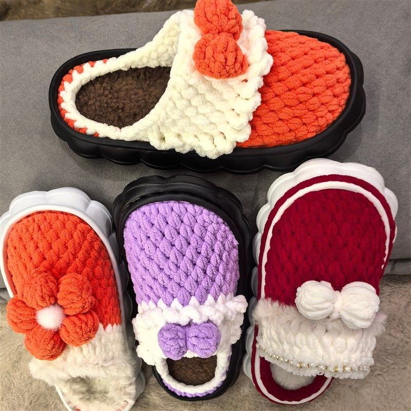 云朵底冰条线纯手工钩织成品男女拖鞋冬天保暖防滑耐磨婚嫁居家