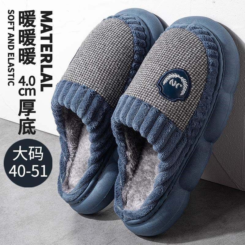 男士棉拖鞋秋冬季家居室内厚底防滑加大码46 47防臭保暖 2025新款