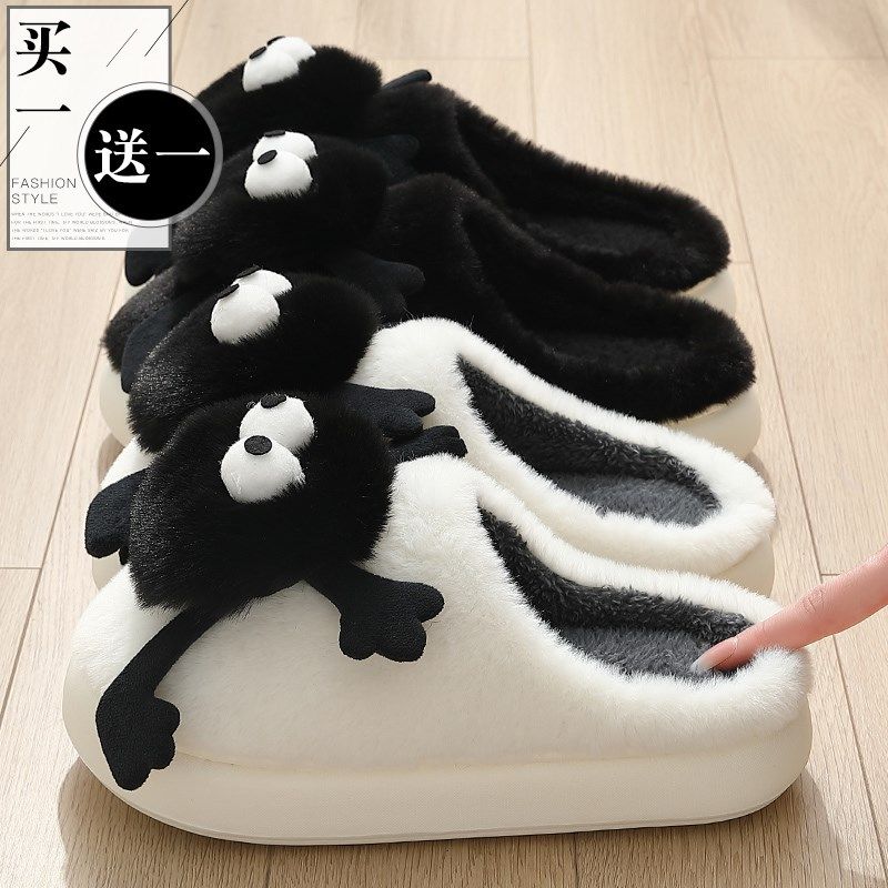买1送1棉拖鞋女秋冬季2024新款家居室内一对情侣毛绒卡通棉拖男款