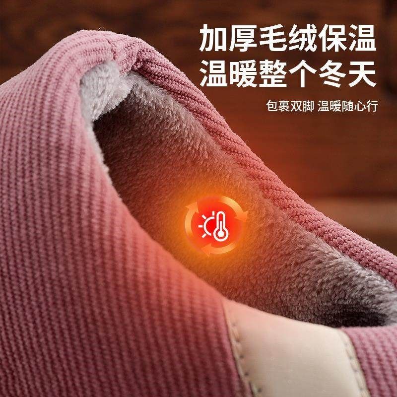 中老年人保暖棉拖鞋男秋冬包跟加绒居家用厚底防滑妈妈棉鞋外穿女