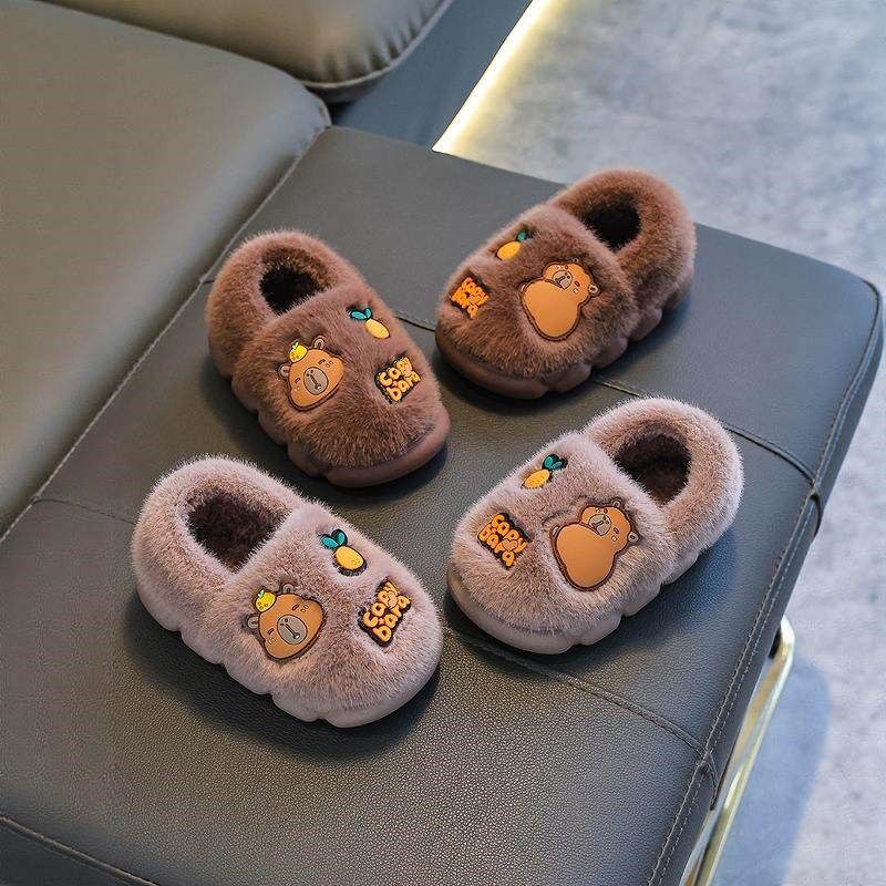 儿童拖鞋卡皮巴拉男童居家防滑加绒保暖包跟棉鞋女宝宝卡通棉拖鞋