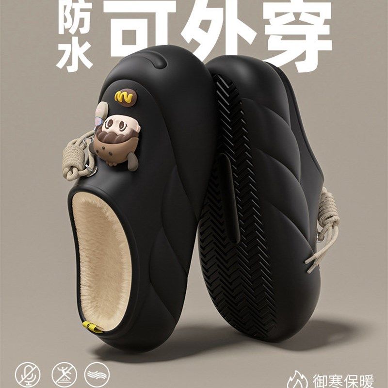 防水外穿棉拖鞋女士冬季2新款加厚毛绒保暖家居踩屎感棉拖女款