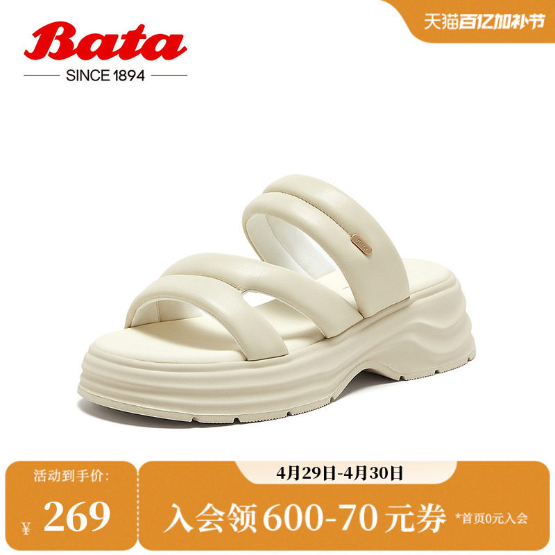Bata外穿拖鞋女季商场新款羊皮百搭厚底休闲凉拖鞋UDZ14BT5