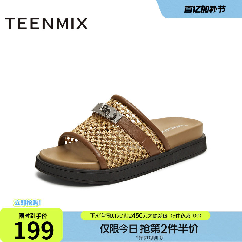 天美意一字拖复古度假厚底拖鞋女外穿休闲凉鞋夏季新款KT064BH5