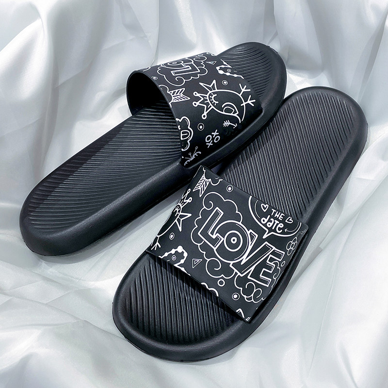 个性涂鸦轻便拖鞋女夏季情侣大码凉拖鞋男外穿家居防滑浴室一字拖