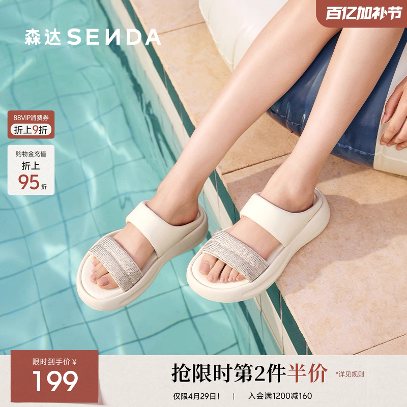 森达休闲凉拖鞋女款夏新商场同款丑萌厚底亮钻凉鞋XMT02BT5