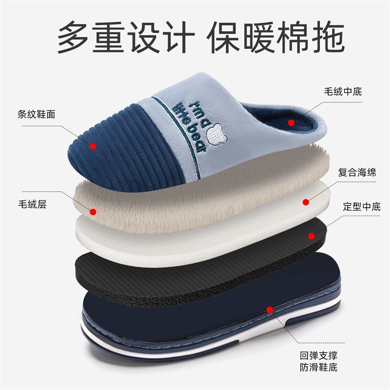 棉拖鞋女士室内踩屎感加绒冬季拖鞋男毛绒冬天保暖秋爱情侣居家