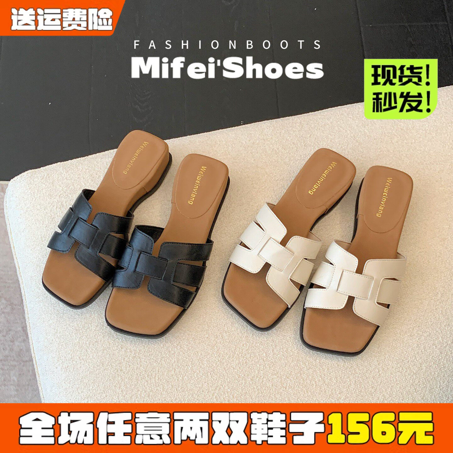 外贸原单女鞋新款时尚百搭日常出行休闲方头纯色平底拖鞋时装凉鞋