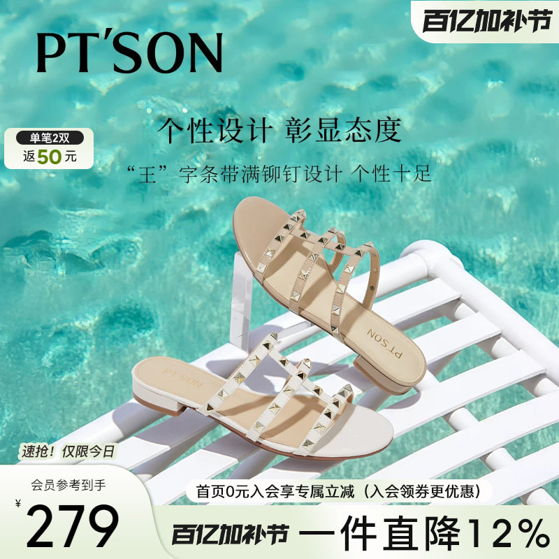 百田森铆钉平底拖鞋女新款外穿夏凉拖鞋女设计感小众女士拖鞋