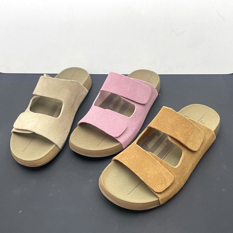 工厂处理2025夏季新款真皮露趾平跟防滑软底沙滩外穿勃肯鞋女拖鞋