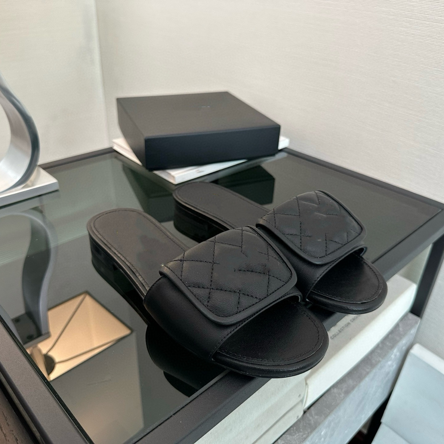 经典时尚2025春夏新款进口黑色格纹小羊皮金属扣显瘦外穿凉拖鞋女