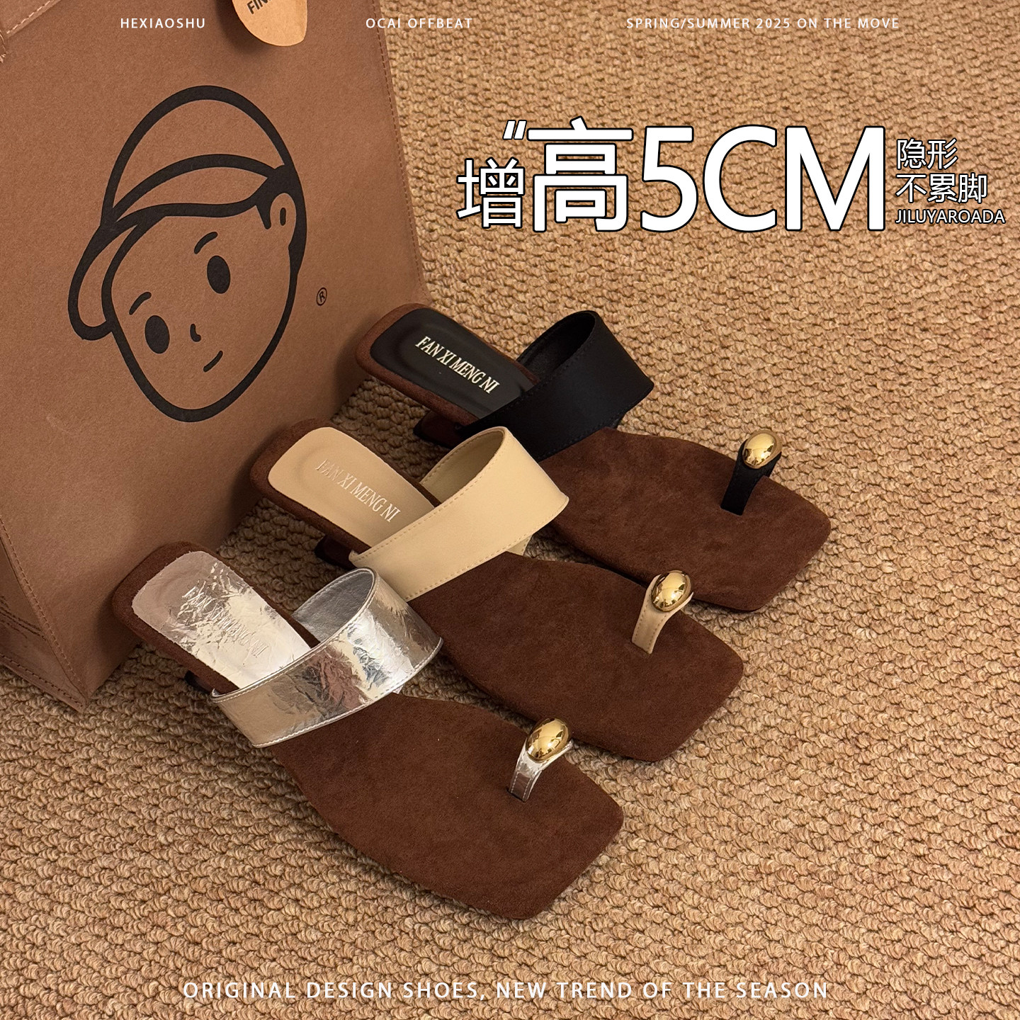 nnmiss/6.5cm踩屎感简约法式复古圆头露趾日常外穿厚底一字带拖鞋