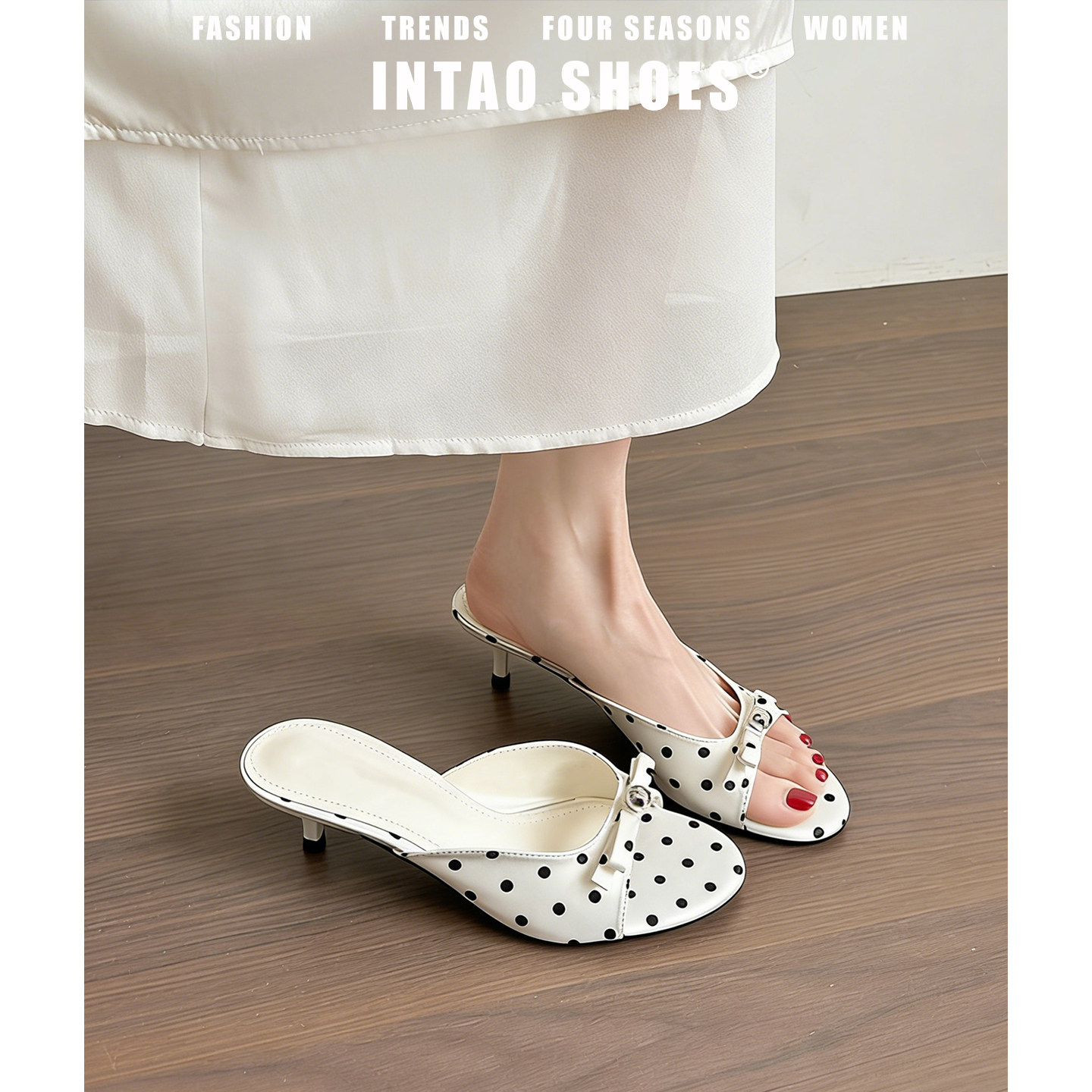 白色蝴蝶结仙女风波点一字带拖鞋夏天外穿2026新款绝美露趾凉拖鞋