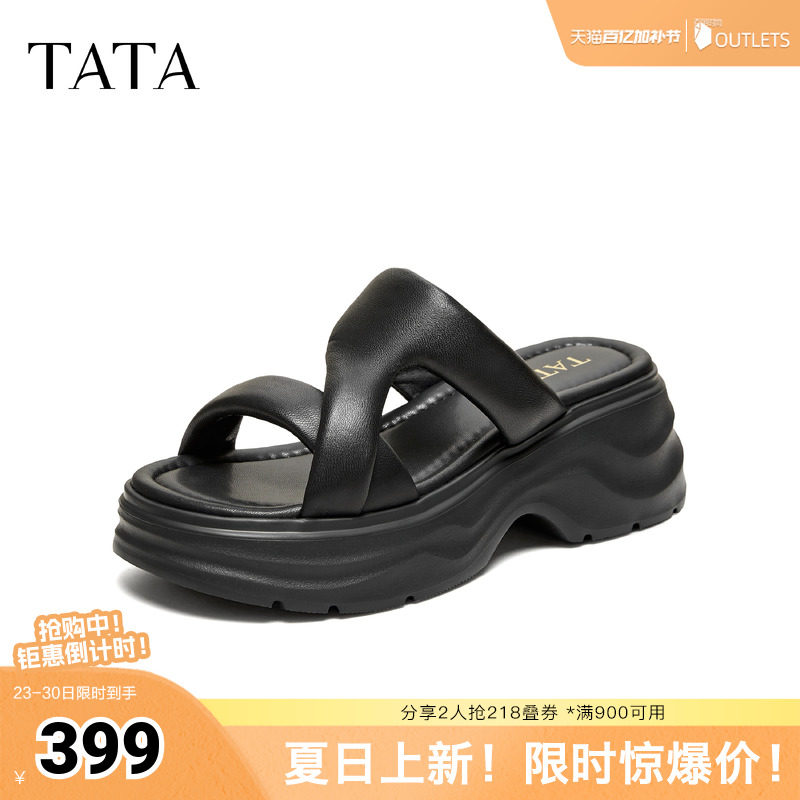 TATA他她女鞋2026夏季新款一字拖外穿百搭时尚休闲凉拖鞋CXT02BT6