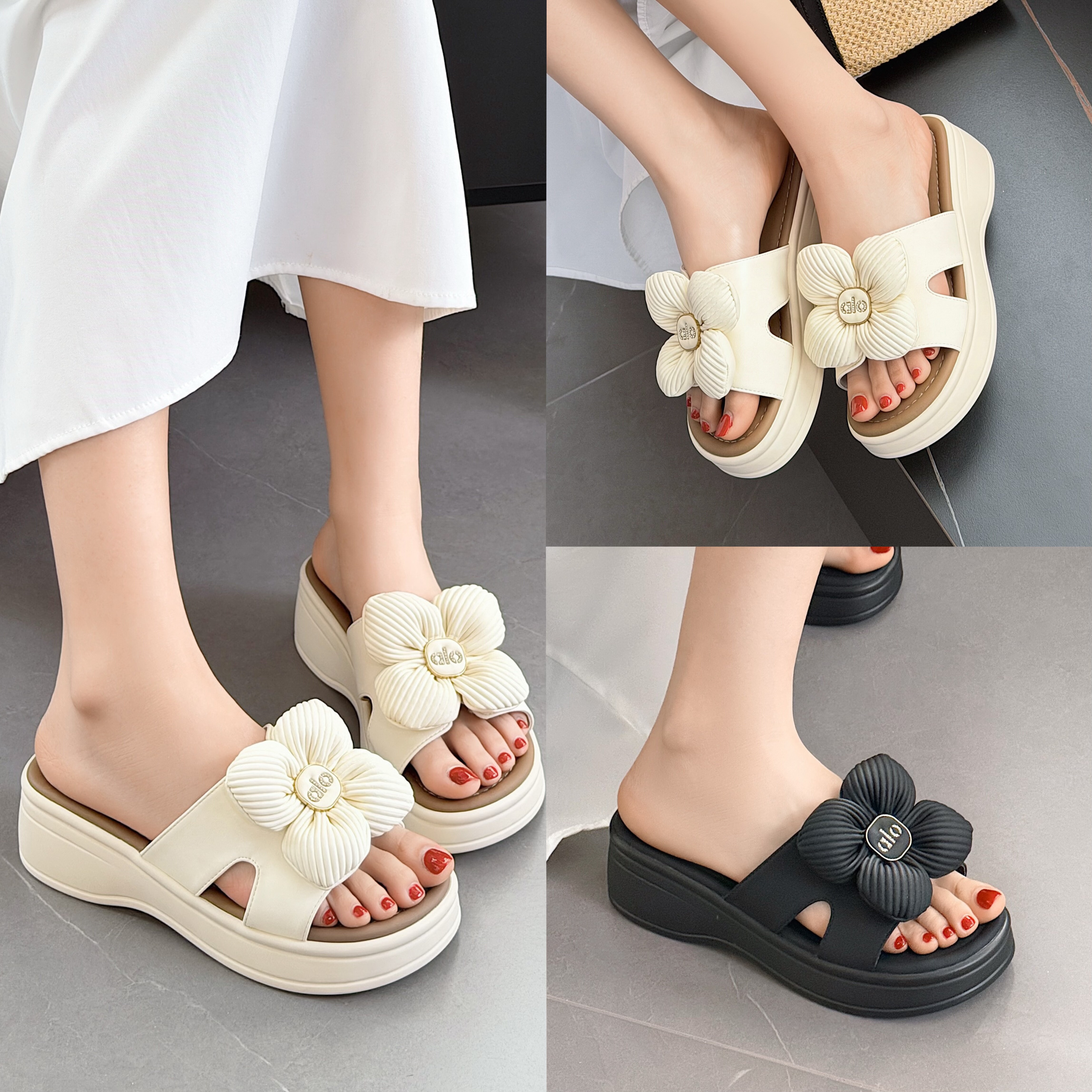 欧乐琳2026夏厚底坡跟外穿拖鞋休闲防滑沙滩鞋显瘦增高松糕一字拖