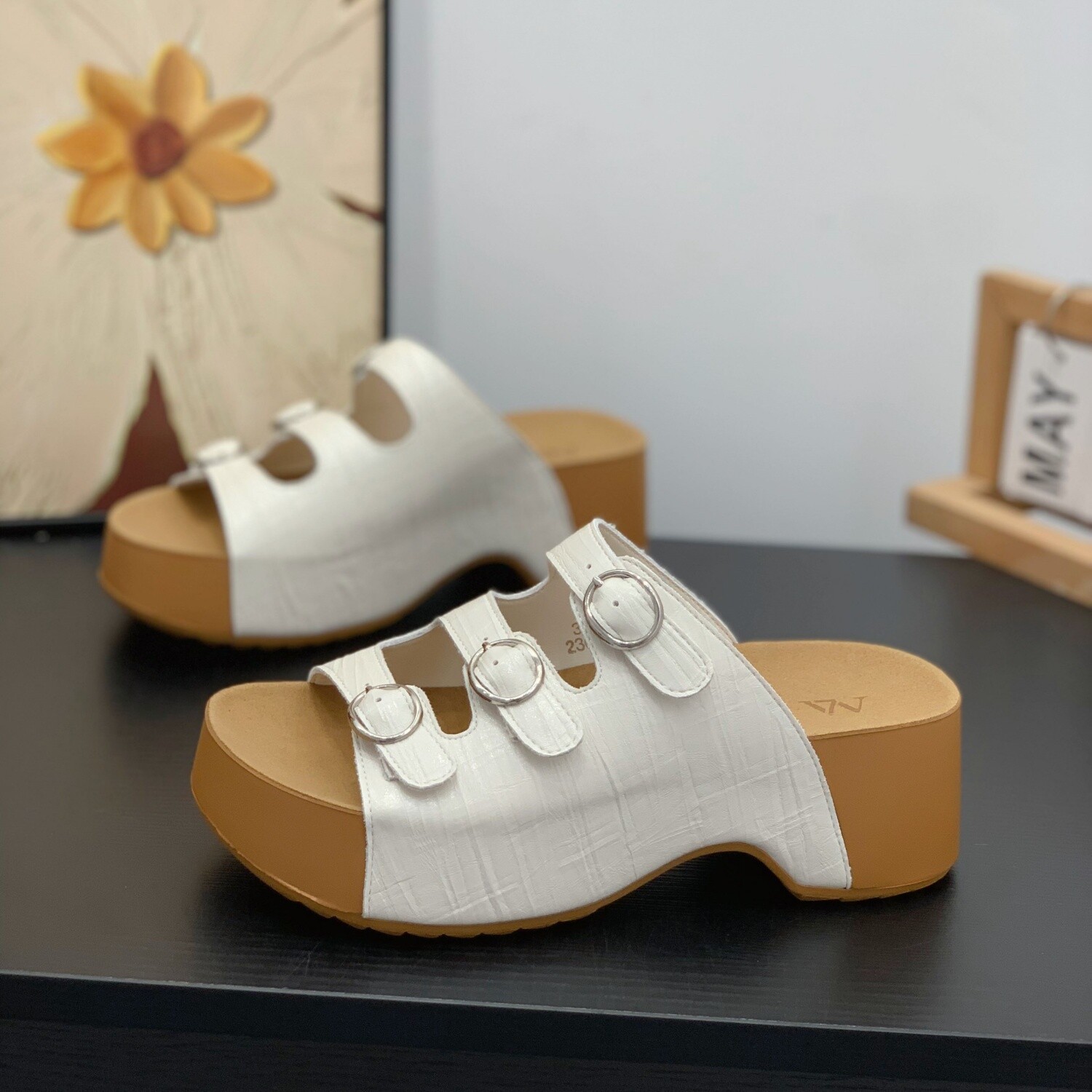 白色甜美波点透明一字拖鞋女外穿2026夏季新款松糕厚底增高凉拖鞋