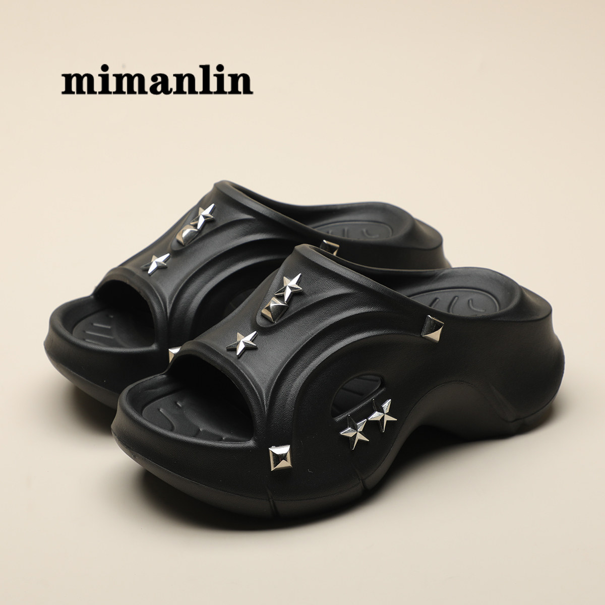 厚底半拖鞋女夏季外穿2024年新款黑色增高一字高跟凉拖鞋潮牌时尚