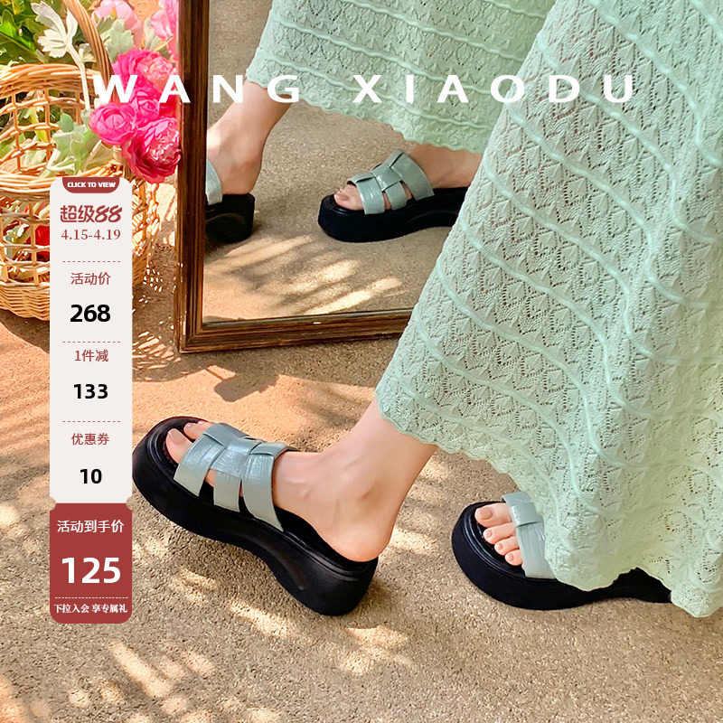 原创【王小毒】薄荷编织○5.5cm亮面一字拖女厚底罗马度假风拖鞋