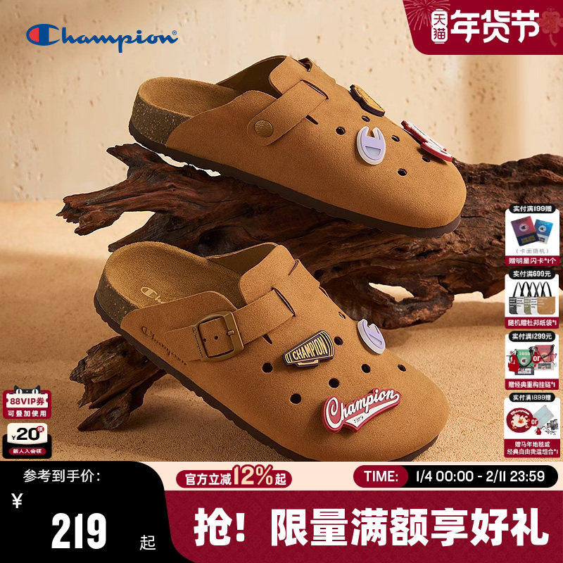 Champion冠军勃肯鞋女25秋冬新款百搭平底单鞋时尚休闲全包拖鞋男