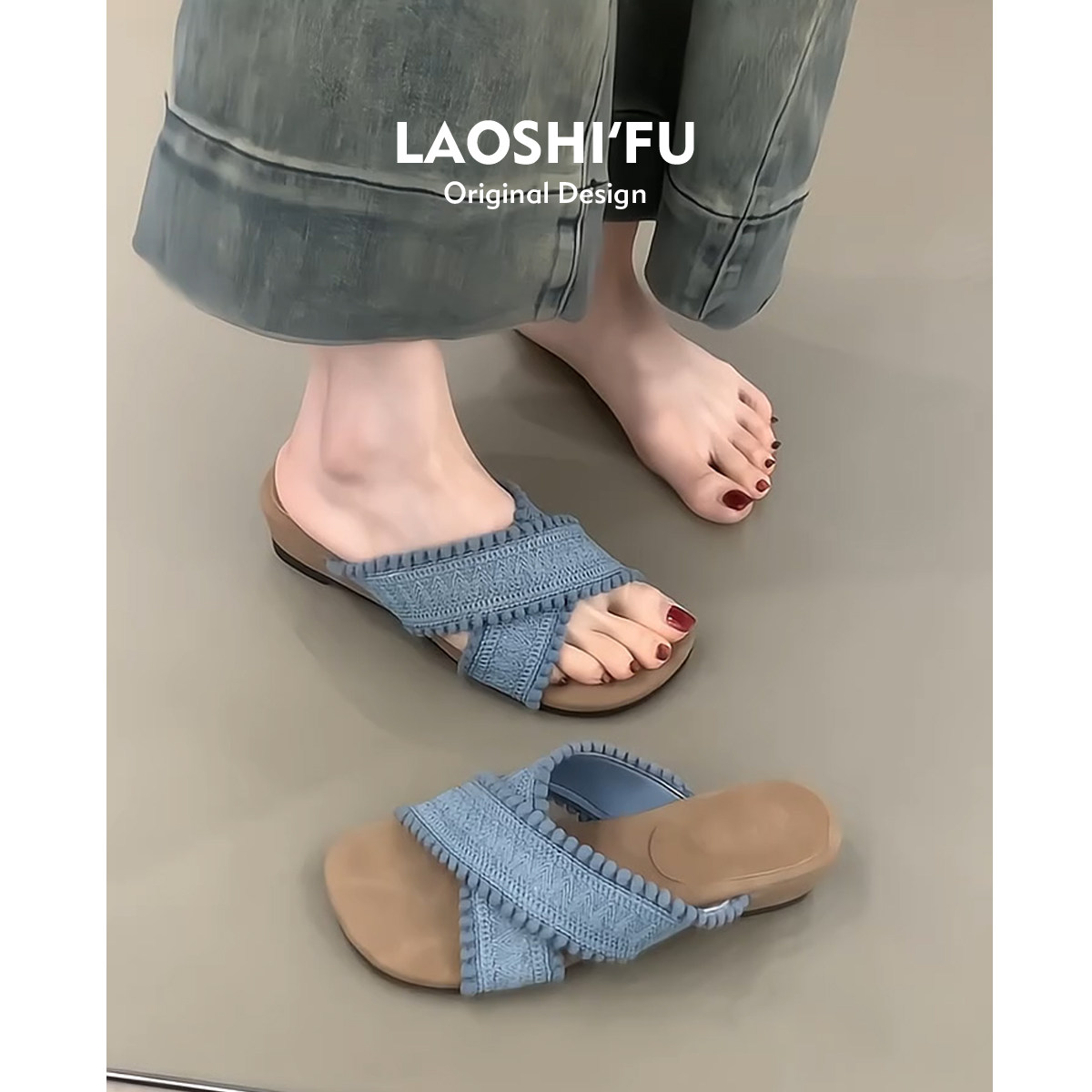 外贸原单女鞋新款时尚百搭日常出行休闲方头纯色平底拖鞋时装凉鞋