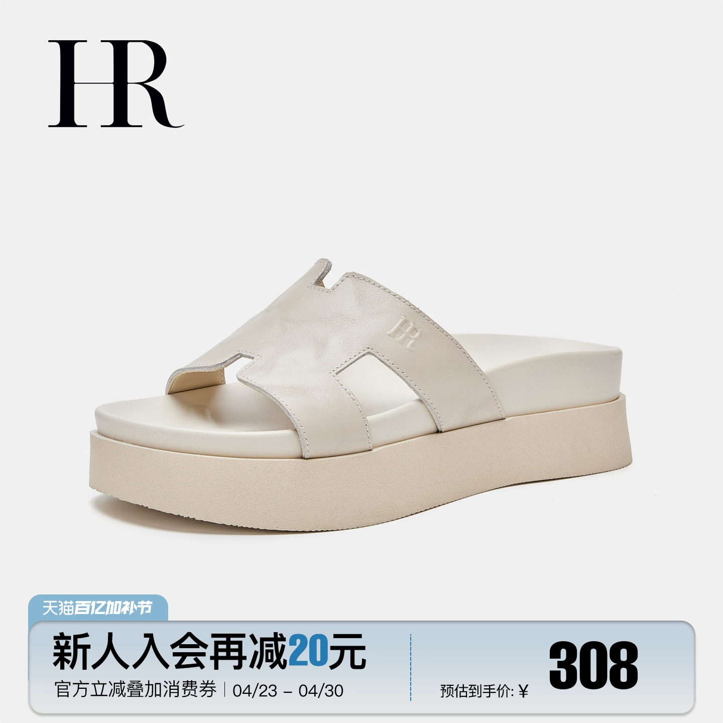HR赫莲娜沙滩拖鞋2026年夏季新款女鞋子一字拖鞋厚底牛皮舒适外穿