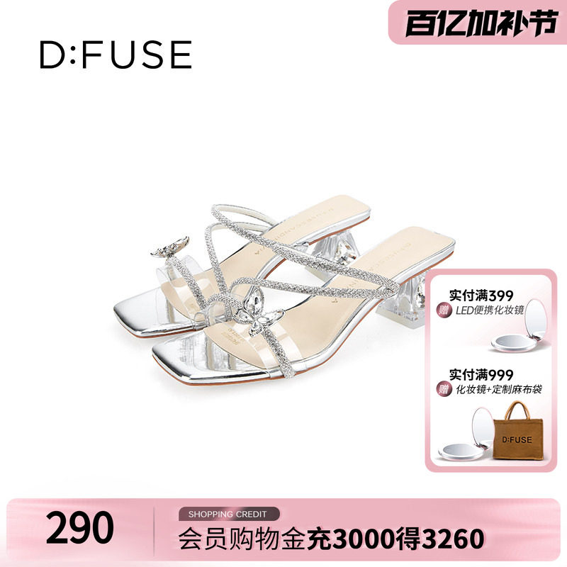DFuse迪芙斯2026春夏款方头立体蝴蝶钻链拖鞋时装凉鞋