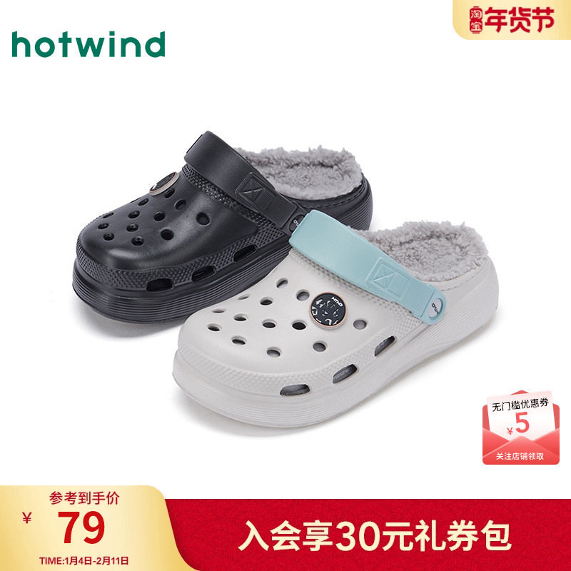热风男鞋2025年冬季新款男士加绒保暖家居拖鞋灰色厚底包头半拖