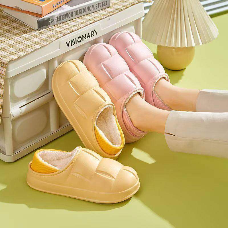 秋冬季棉拖鞋男士特大码室内外防滑家居家用静音厚底踩屎感棉鞋女