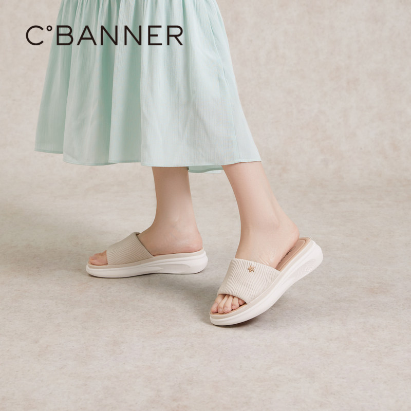 千百度面包一字拖女款夏季气质厚底增高时尚平底度假外穿拖鞋百搭