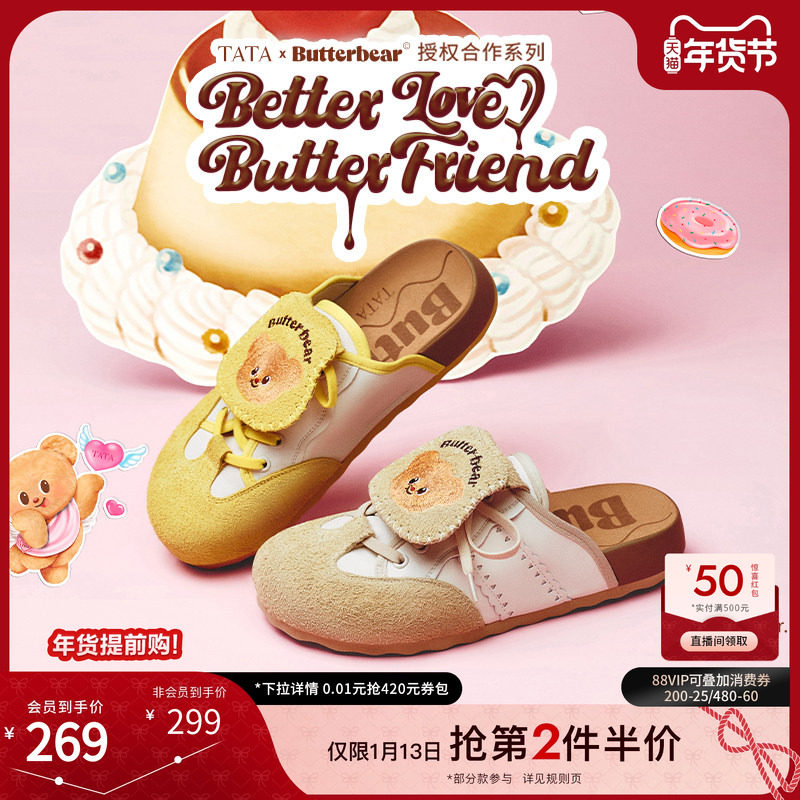 徐若晗同款TATA他她黄油小熊联名厚底勃肯鞋女包头拖鞋子4SZ01BH5