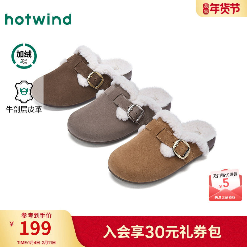 热风加绒勃肯鞋半拖女鞋2025年冬季新款复古棕色休闲拖鞋百搭棉鞋