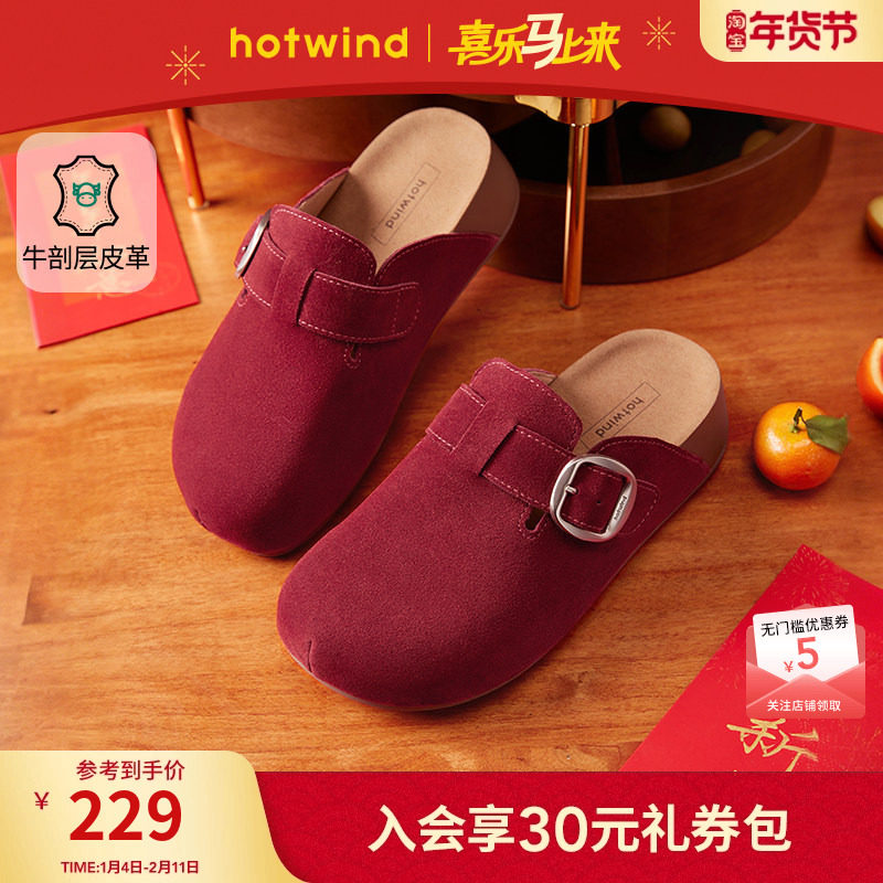 热风复古勃肯鞋女款2026年春季新款半包休闲拖鞋百搭女鞋一脚蹬