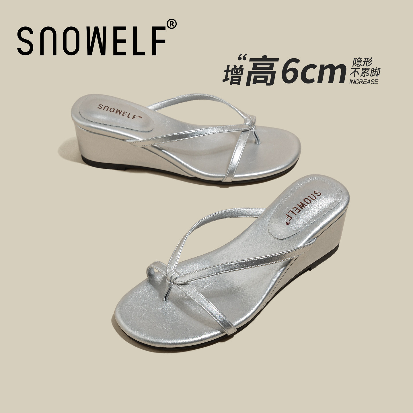 银色人字拖厚底坡跟夹脚拖鞋女士2026新款夏季增高女鞋外穿凉鞋子