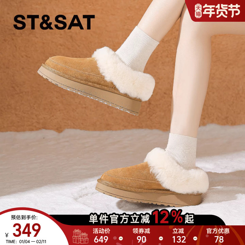 星期六加绒雪地靴女款2025冬季新款厚底保暖防滑懒人一脚蹬棉拖鞋