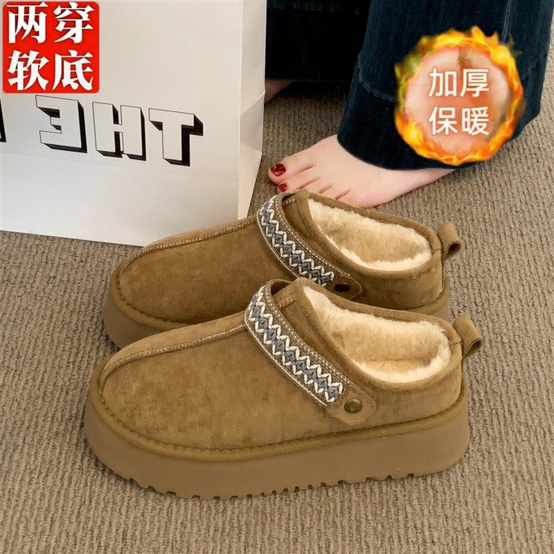 厚底包头棉拖鞋女2025秋冬新款百搭防滑皮毛一体雪地靴