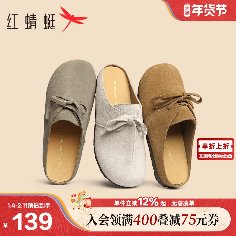 红蜻蜓勃肯鞋女半拖春季新款女鞋外穿一脚蹬鞋子软底舒适包头拖鞋