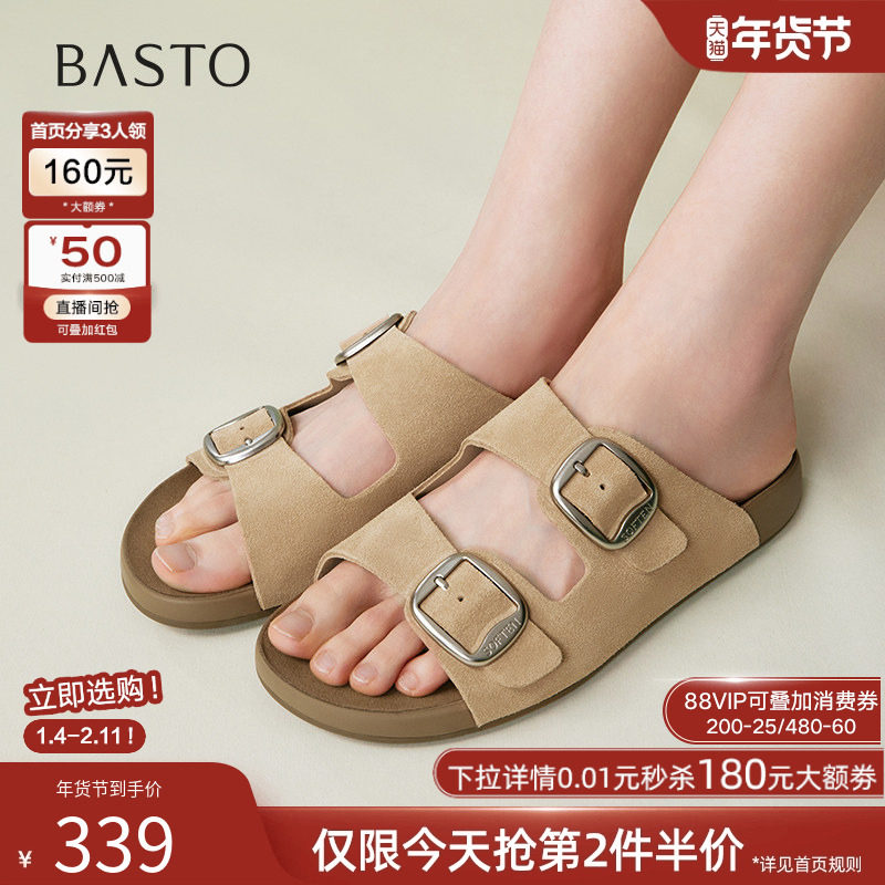 百思图2025夏季新款懒人休闲厚底勃肯拖鞋凉鞋外穿女拖鞋B9311BT5