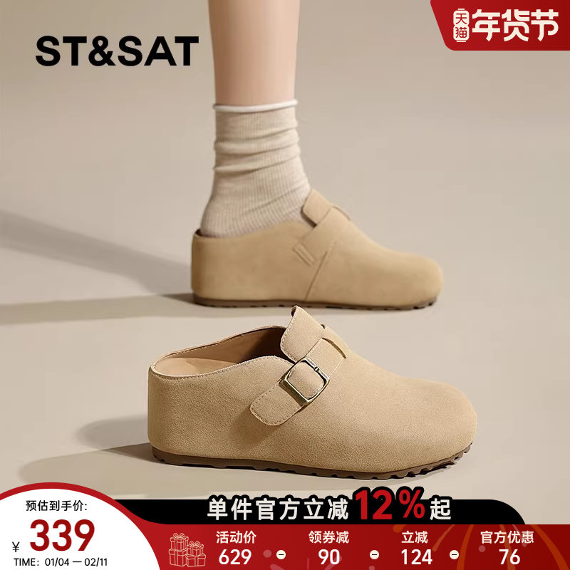 星期六厚底勃肯鞋女春季新款防滑一脚蹬半拖鞋女士复古百搭增高鞋