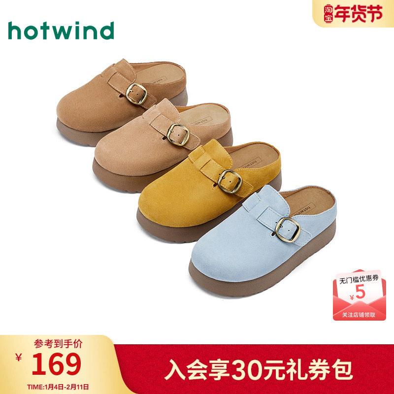 大东女鞋勃肯鞋2025冬季新款复古一脚蹬包头拖鞋加绒厚底懒人鞋