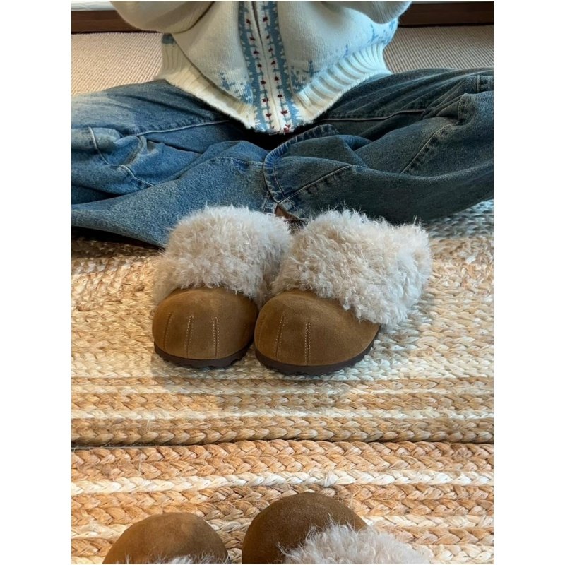 桑坡村小土豆勃肯鞋冬季新款包头羊毛拖鞋丑萌穆勒鞋毛毛拖鞋外穿