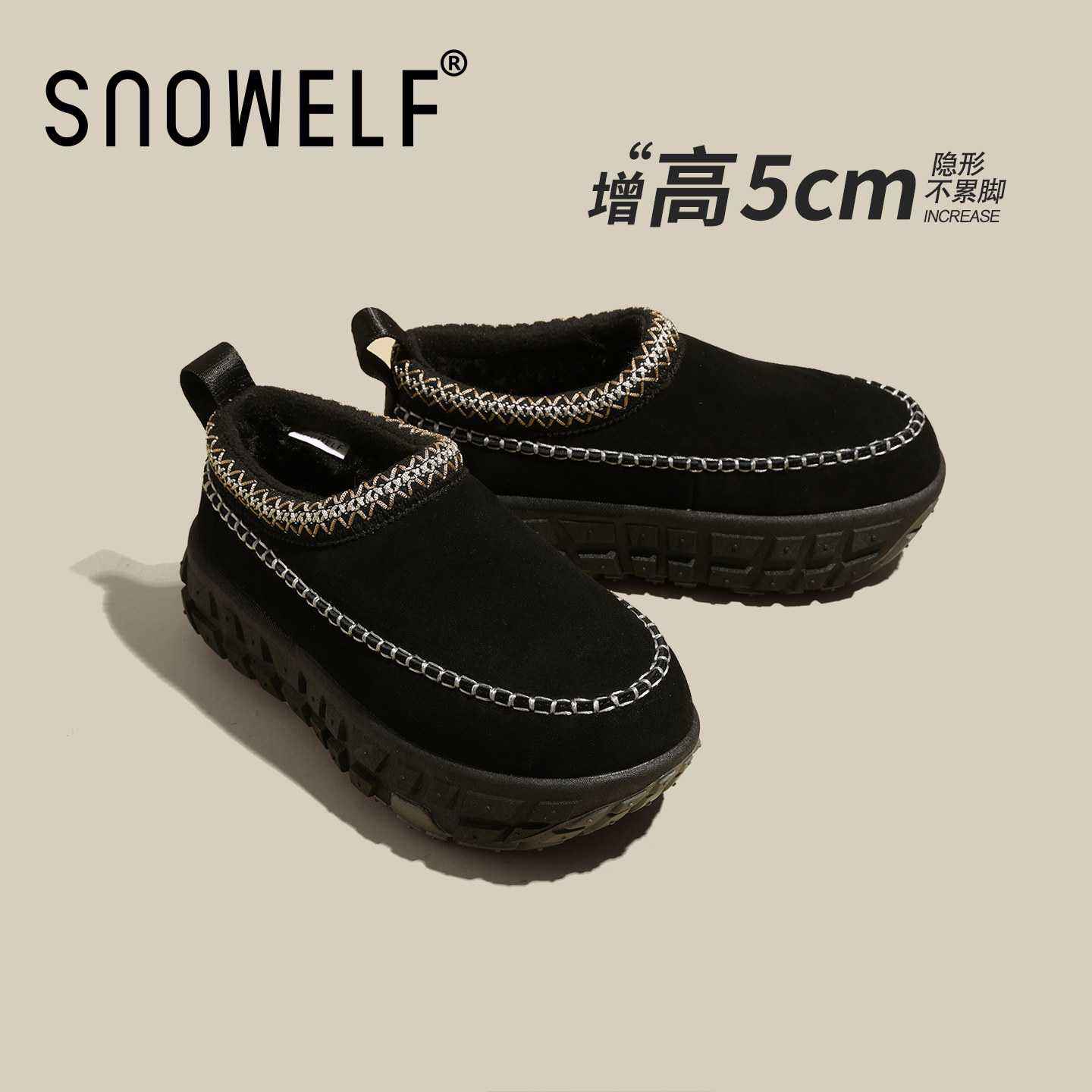 5cm厚底棉鞋女2025冬季新款加绒雪地靴百搭保暖拖鞋一脚蹬勃肯鞋
