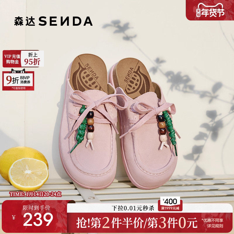 森达勃肯半拖鞋女款2025夏新舒适厚底外穿包头休闲拖鞋ZTG30BH5