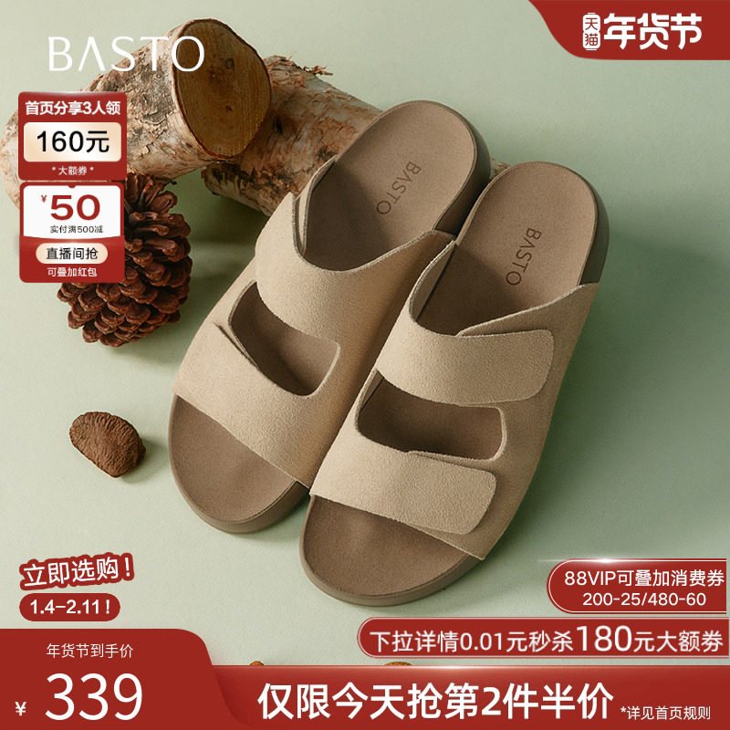 百思图2025夏季商场新款休闲懒人勃肯鞋平底外穿女拖鞋A6412BT5