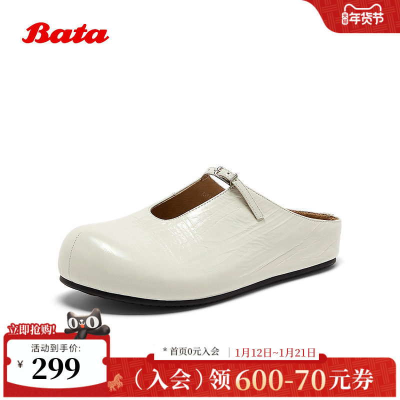 Bata勃肯鞋女2025秋季新款英伦风牛皮舒适厚底百搭凉拖鞋83813CH5