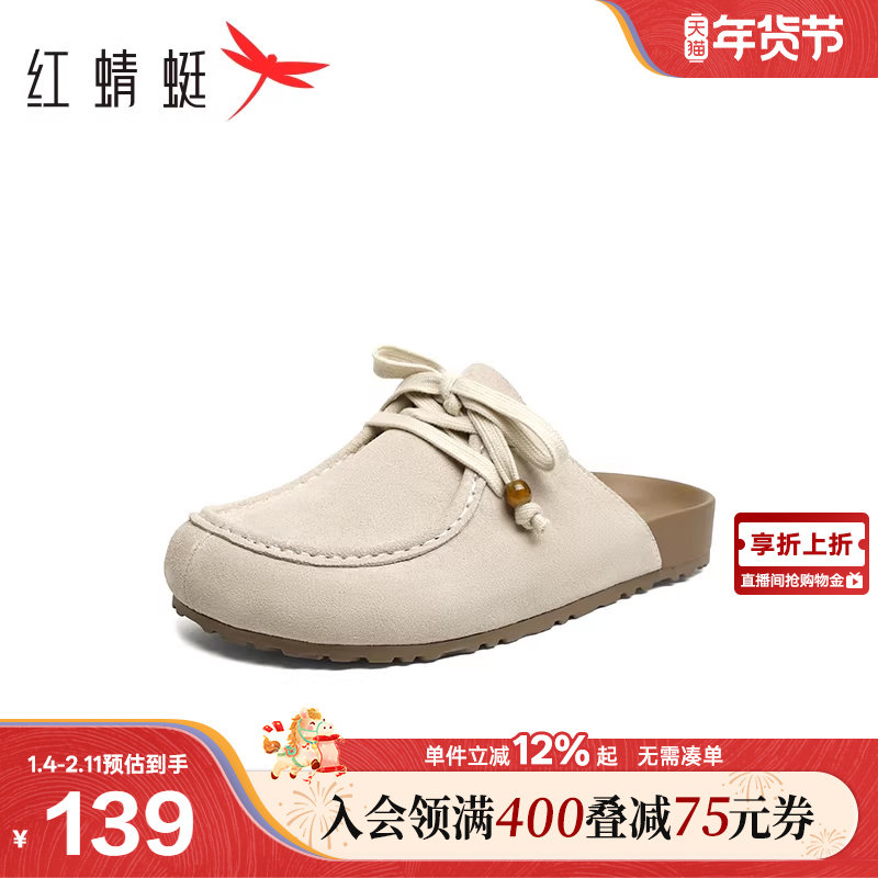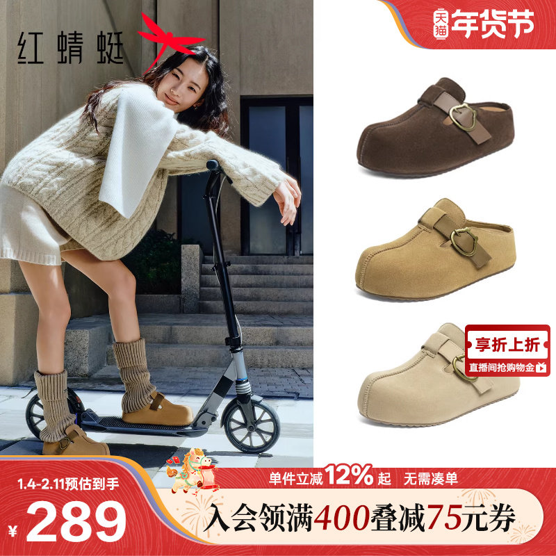 红蜻蜓厚底勃肯拖鞋女春季新款一脚蹬女鞋半拖包头穆勒鞋袋鼠鞋