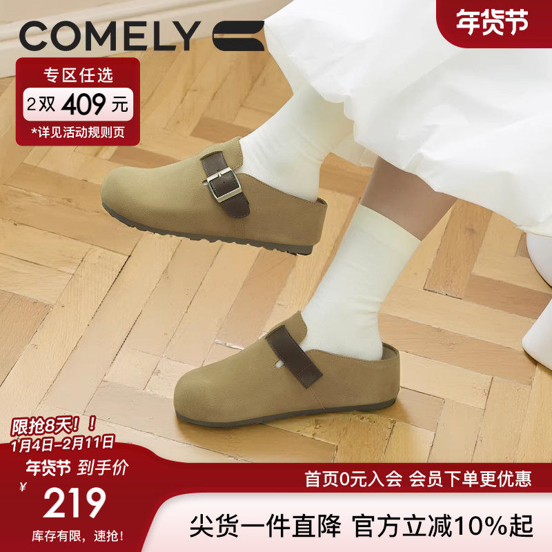 大东勃肯鞋包头拖鞋女2026春季新款简约圆头女鞋低跟皮带扣女拖鞋