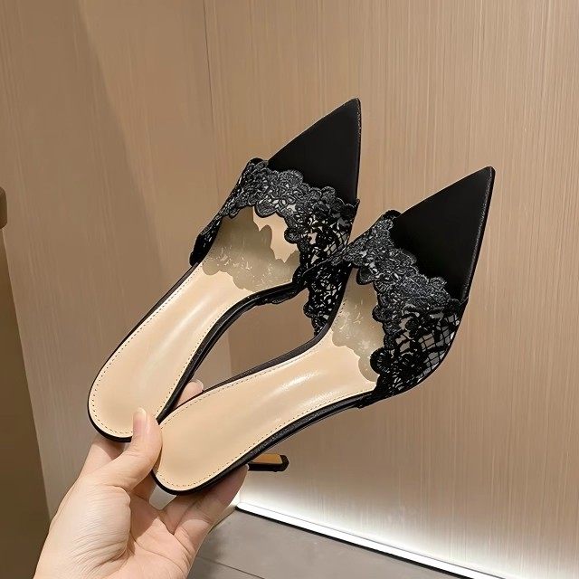 尖头宴会高跟女2026气质新款刺绣细跟单鞋黑色绣花凉拖鞋